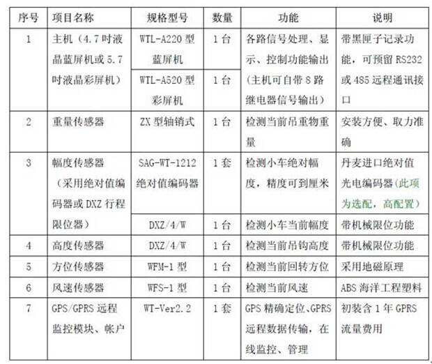 四、塔機6 限位黑匣子及遠程監(jiān)控系統(tǒng)配置清單